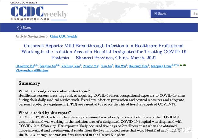 @央视新闻 西安某医院检查员在接种两剂新冠疫苗后仍感染新冠病毒。昨天,《中国疾病预防控制中心周刊》发表调查报告:原因是她可能在发病前5天就曾接触过携带英国变异病毒的环境条件。接种新冠疫苗后,患者临床症状轻、病程短、病毒载量低、几乎无传染性,于4月9日出院。根据流行病学调查,检查员在采集咽拭子时可能被感染3月12日从境外输入(从乌兹别克斯坦返回)2例。